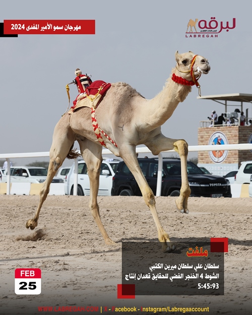 عزفت نخبة الهجن الخليجية على وتر الإبداع والإمتاع في ختام ثاني أيام المهرجان السنوي الكبير لسباق الهجن العربية الأصيلة على سيف حضرة صاحب السمو الشيخ تميم بن حمد آل ثاني أمير البلاد المفدى، مساء اليوم الأحد الموافق 25 فبراير 2024، حيث رفعت الشعارات المتواجدة على أرضية ميدان التحدي شعار التحدي في أشواط الرموز الفضية والجوائز المليونية، لأشواط الحقايق المسائية التي جاءت في قمة الإثارة والقوة والمتعة والندية.
