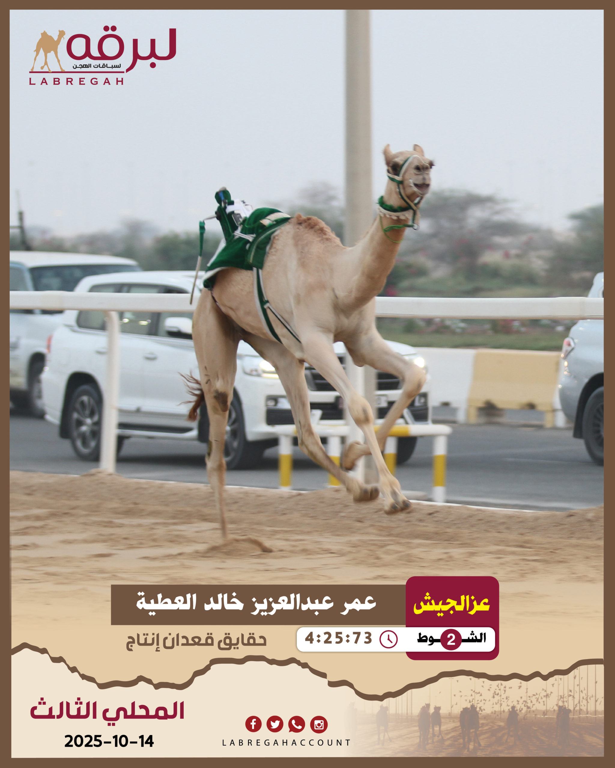 | الشوط الثاني | 1 | عز الجيش | عمر عبدالعزيز خالد عبدالله العطية | 4:25:73 |