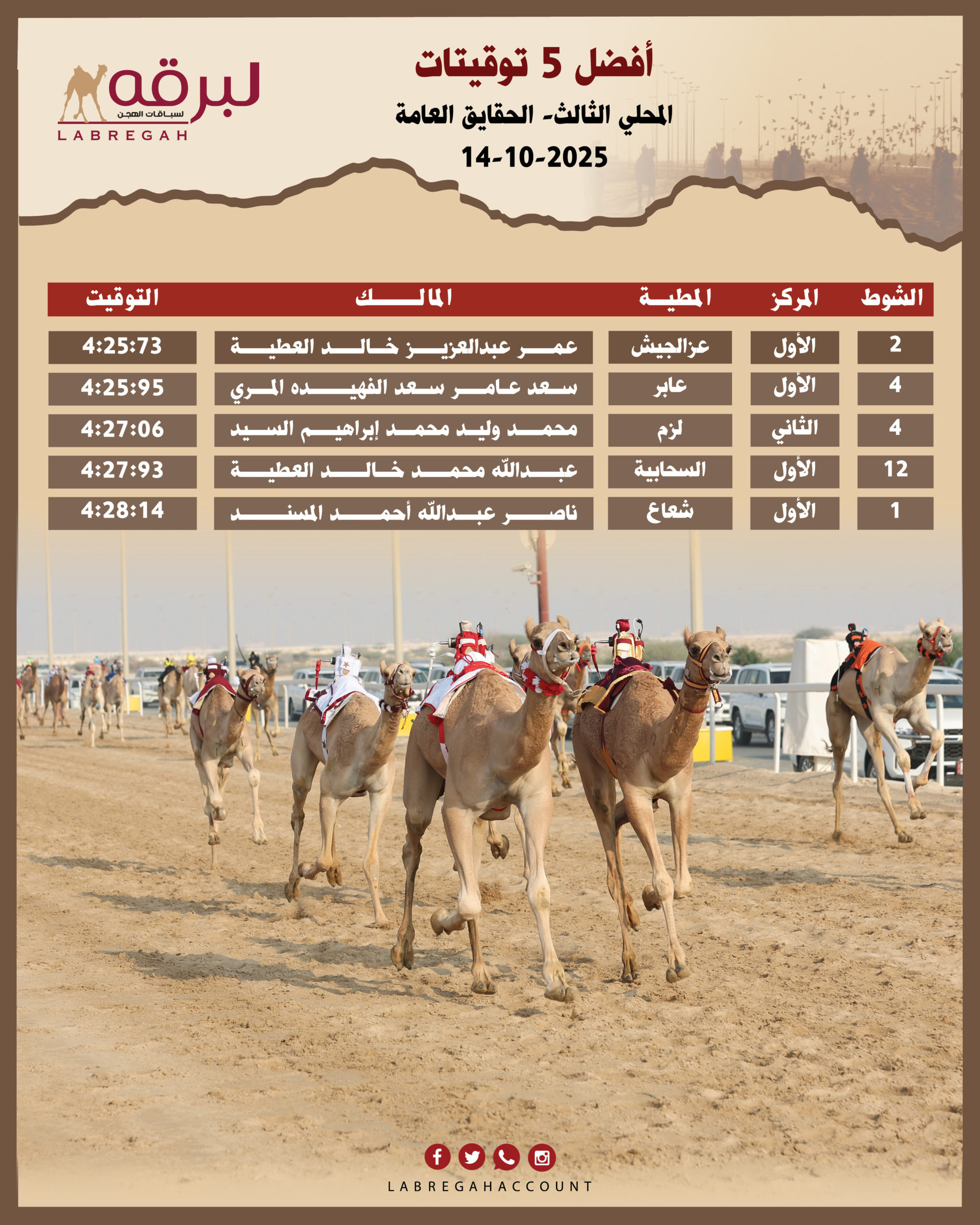 | إنتاج | 3 | عسيلة | سالم مسعود سعيد قطامي المري | 4:28:80 |