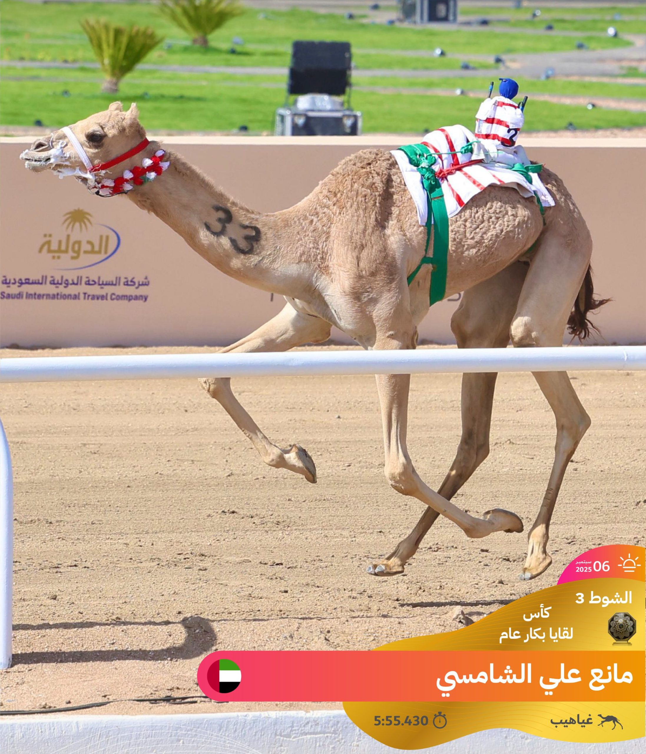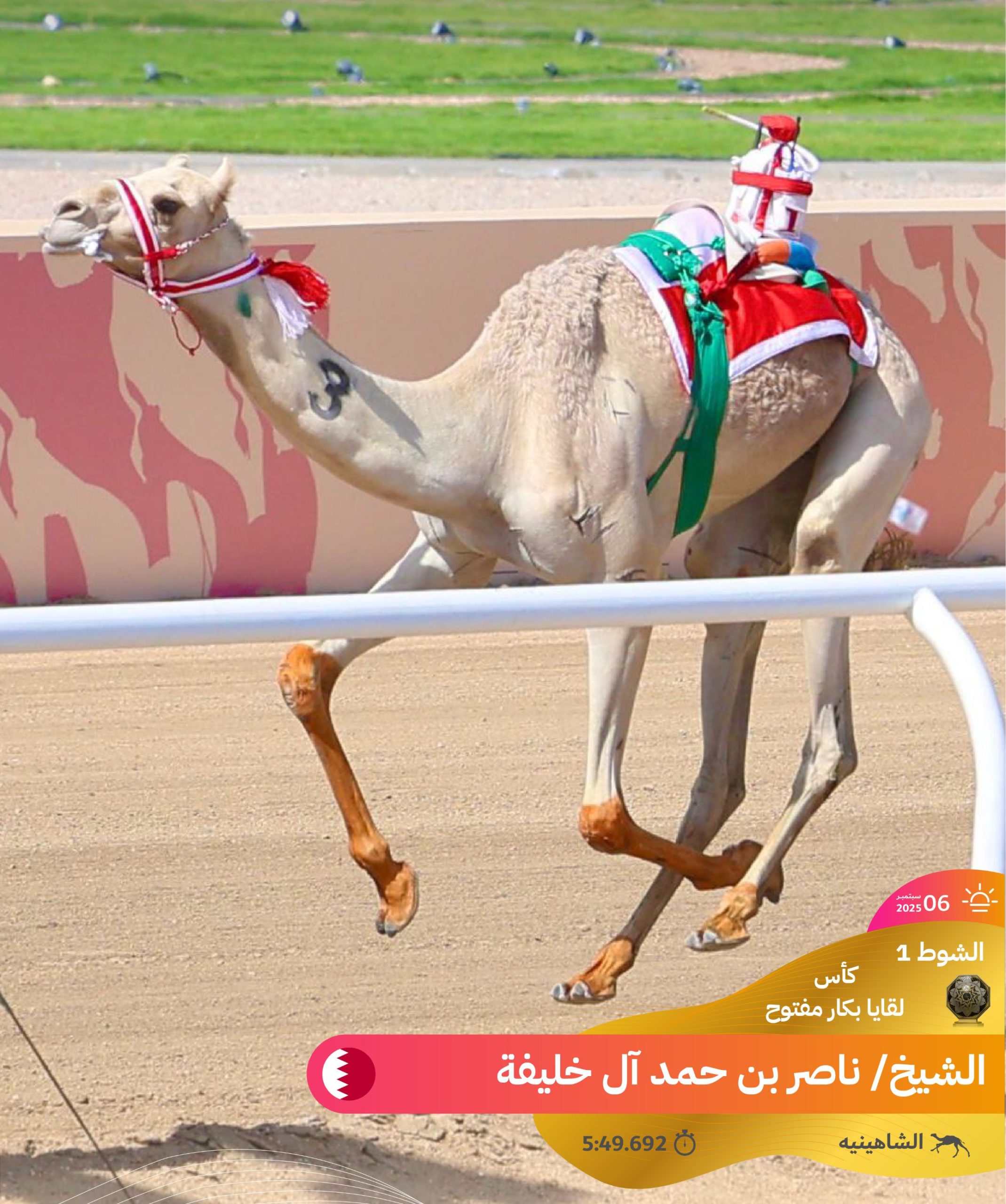 وتضمنت منافسات الفترة الصباحية اليوم، 6 سبتمبر 2025، إقامة 17 شوطًا من مسافة الـ4 كم، طغت عليها قوة المنافسة بين اللقايا، حيث استطاع شعار مفلح حمود مطلق البلوي أن يقتنص ناموس الشوط الأول الرئيسي مع “دجلة” التي قطعت مسافة الشوط في 6.09.46 دقيقة، بالمقابل، حصد محمد عبيد راشد الفهيده المري ناموس القعدان مع “النحاوي” الذي سجل توقيتً قدره 6.12.57 دقيقة.