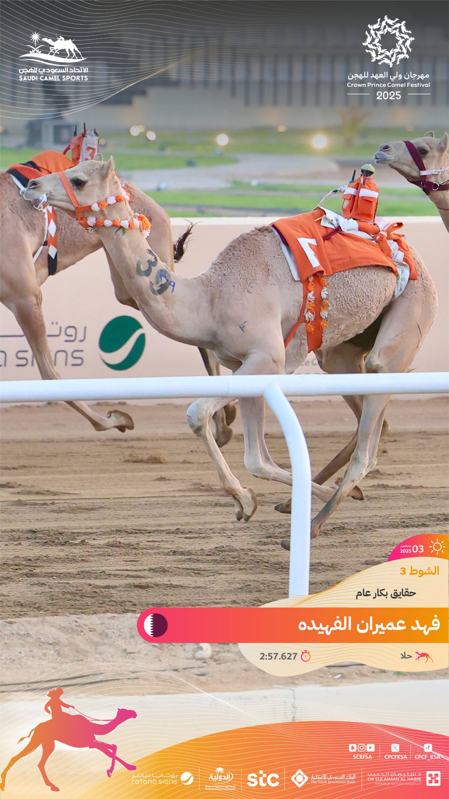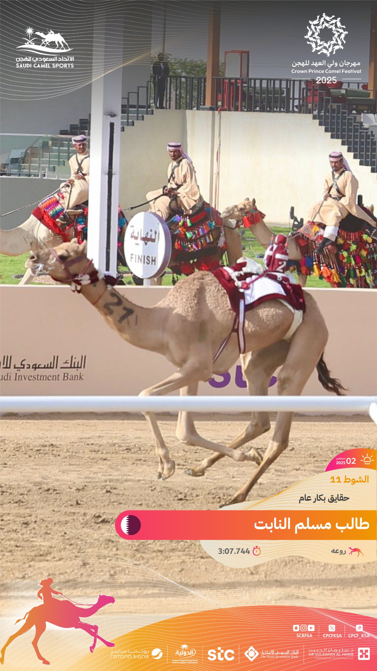 سيطرت الهجن القطرية على المراكز الأولى في الأشواط الرئيسة للفترة المسائية، باليوم الثاني لمهرجان ولي عهد المملكة العربية السعودية للهجن 2025، بالإضافة إلى تسجيلها عدة نقاط أخرى مهمة بلغت 5 نقاط.