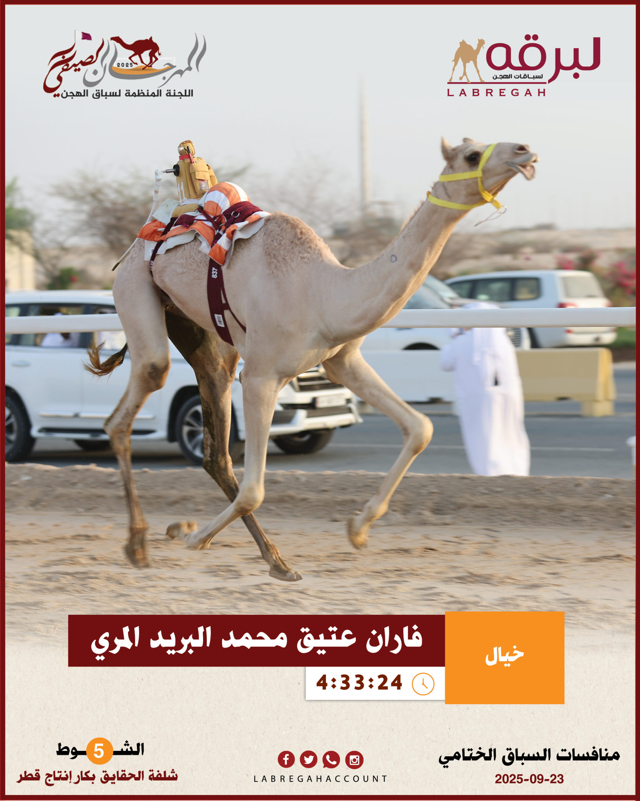 | قعدان إنتاج قطر | 3 | الصاقب | حمد علي سويدان محمد الغيثاني | 4:35:91 |