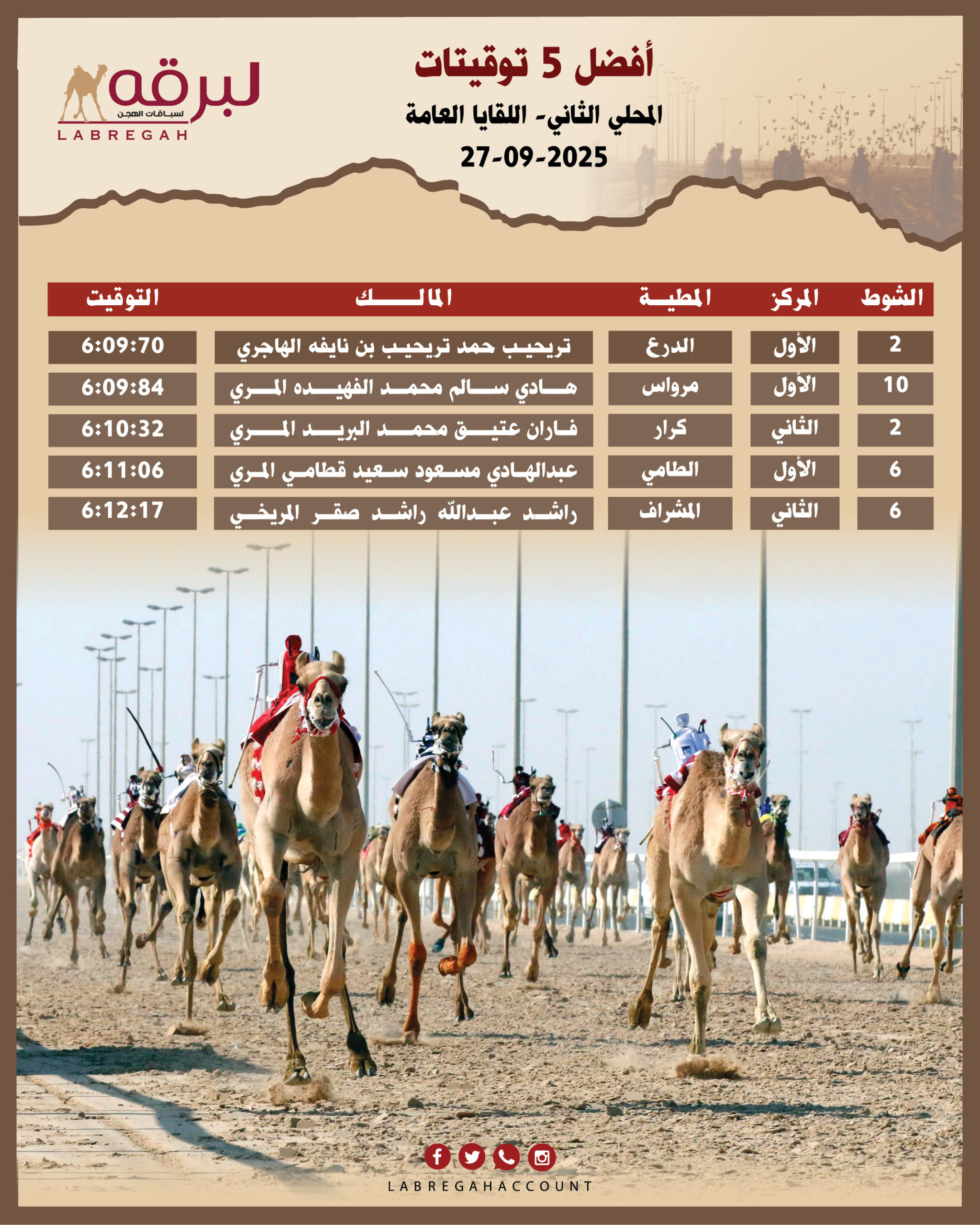 | رئيسي اللقايا | 2 | كرار | فاران عتيق محمد البريد المري | 6:10:32 |