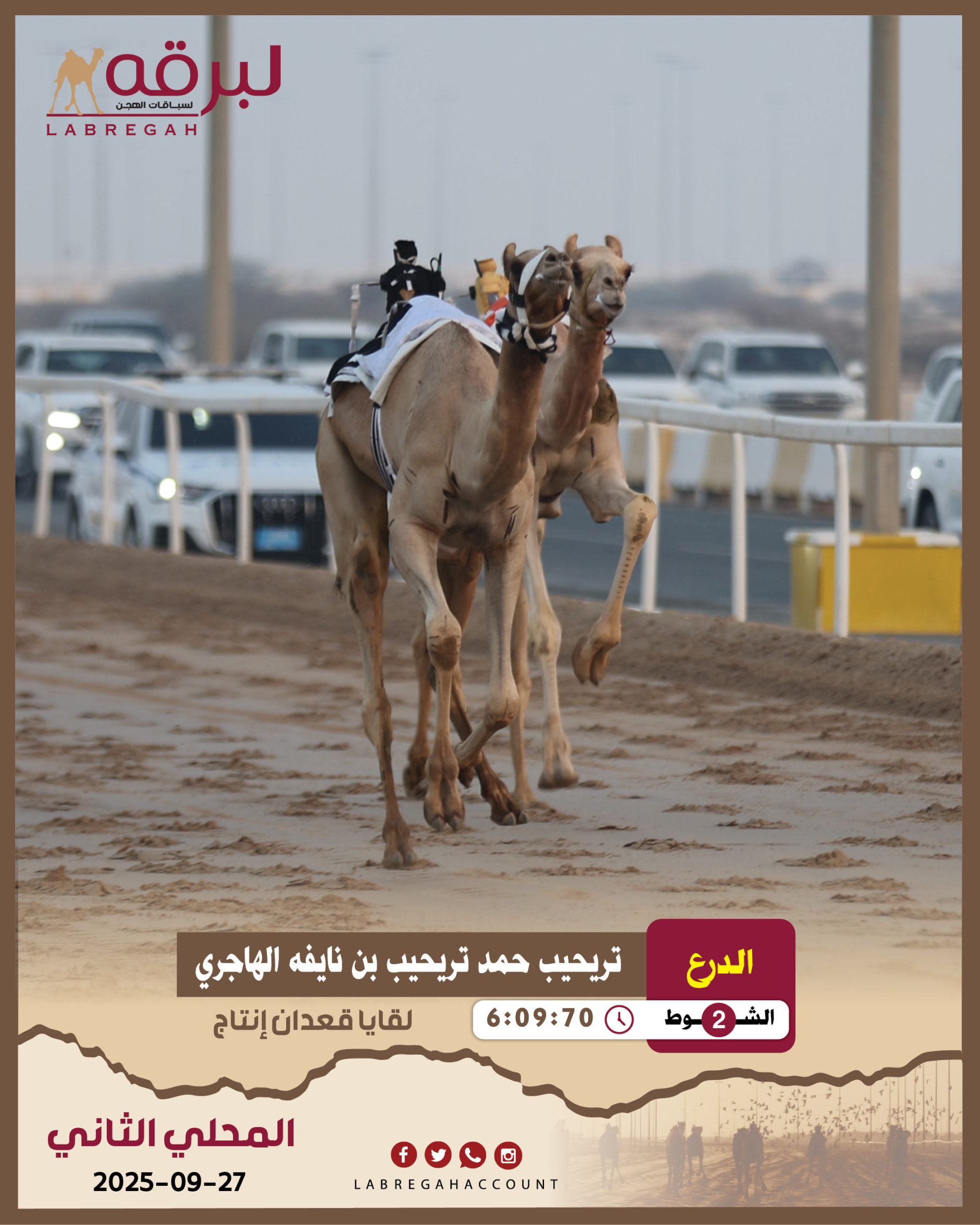 | الشوط الثاني | 1 | الدرع | تريحيب حمد تريحيب بن نايفه الهاجري | 6:09:70 |