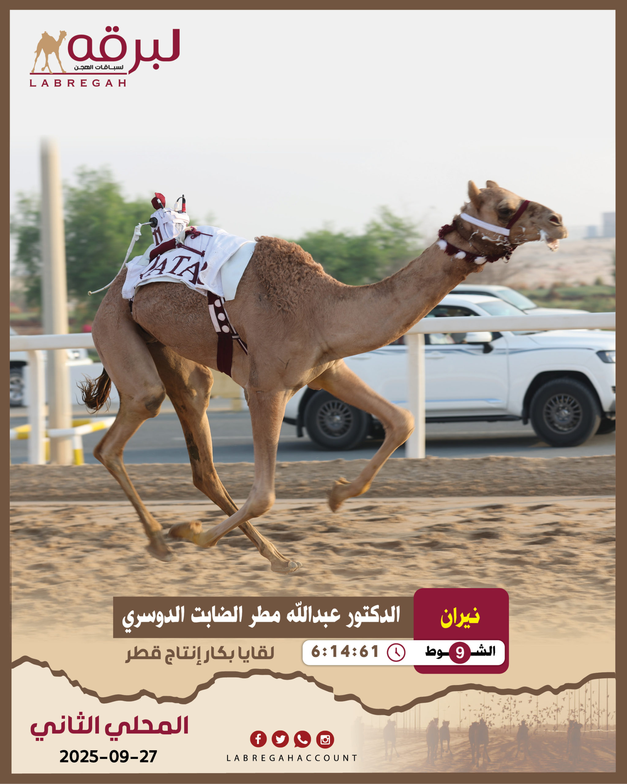 | الشوط التاسع | 1 | نيران | الدكتور عبدالله مطر الضابت الدوسري | 6:14:61 |
