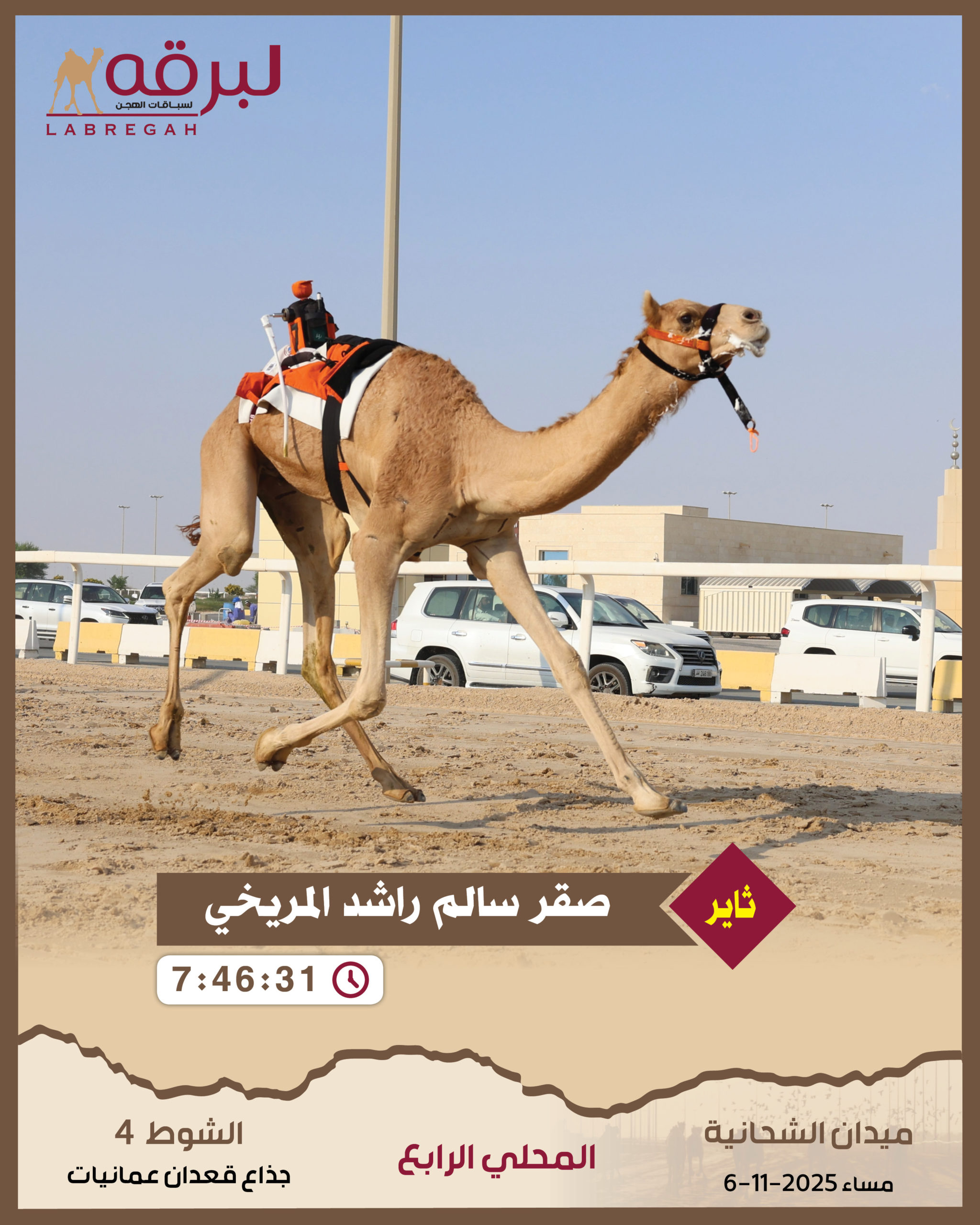 | الشوط الرابع | 1 | ثاير | صقر سالم راشد المريخي | 7:46:31 |