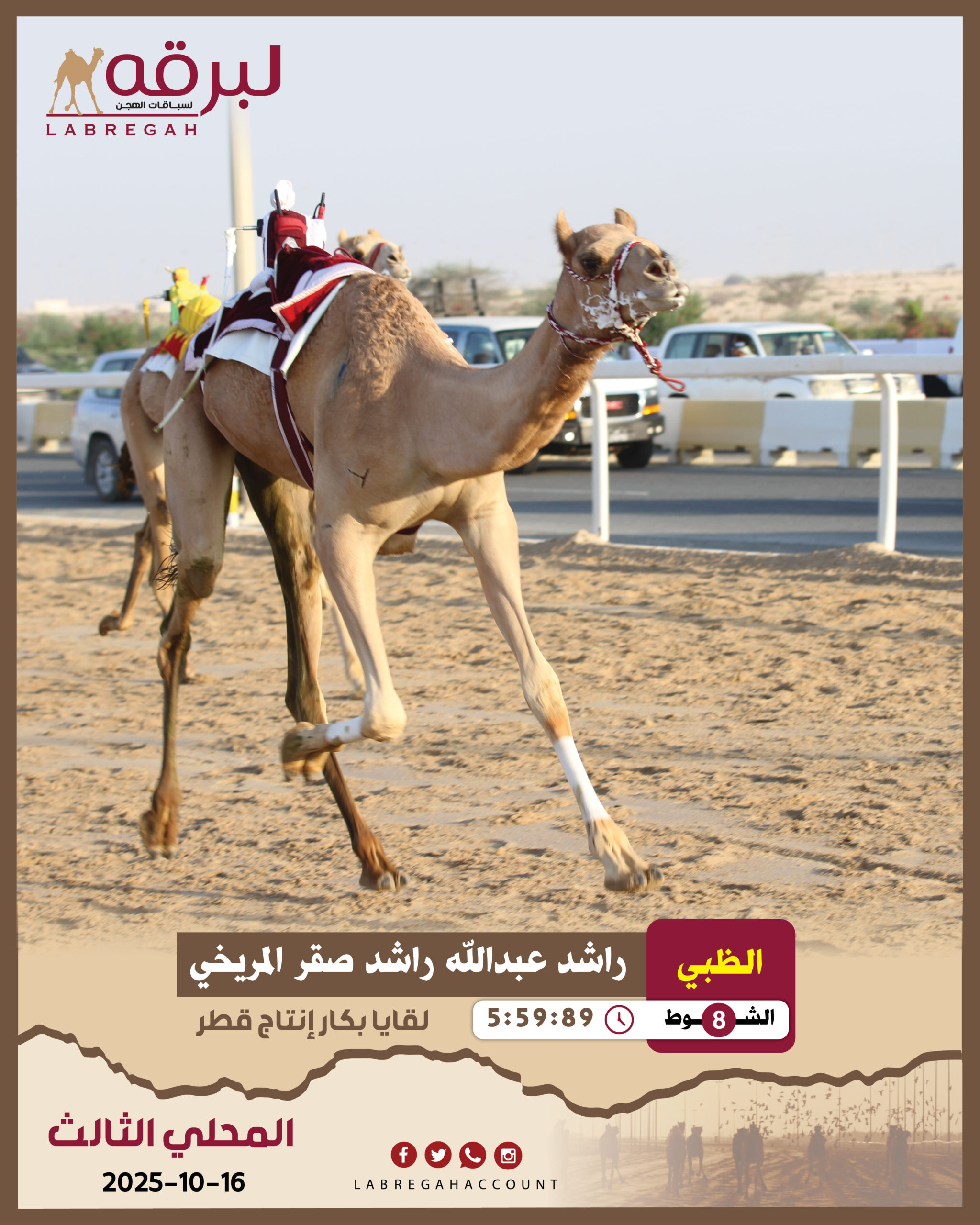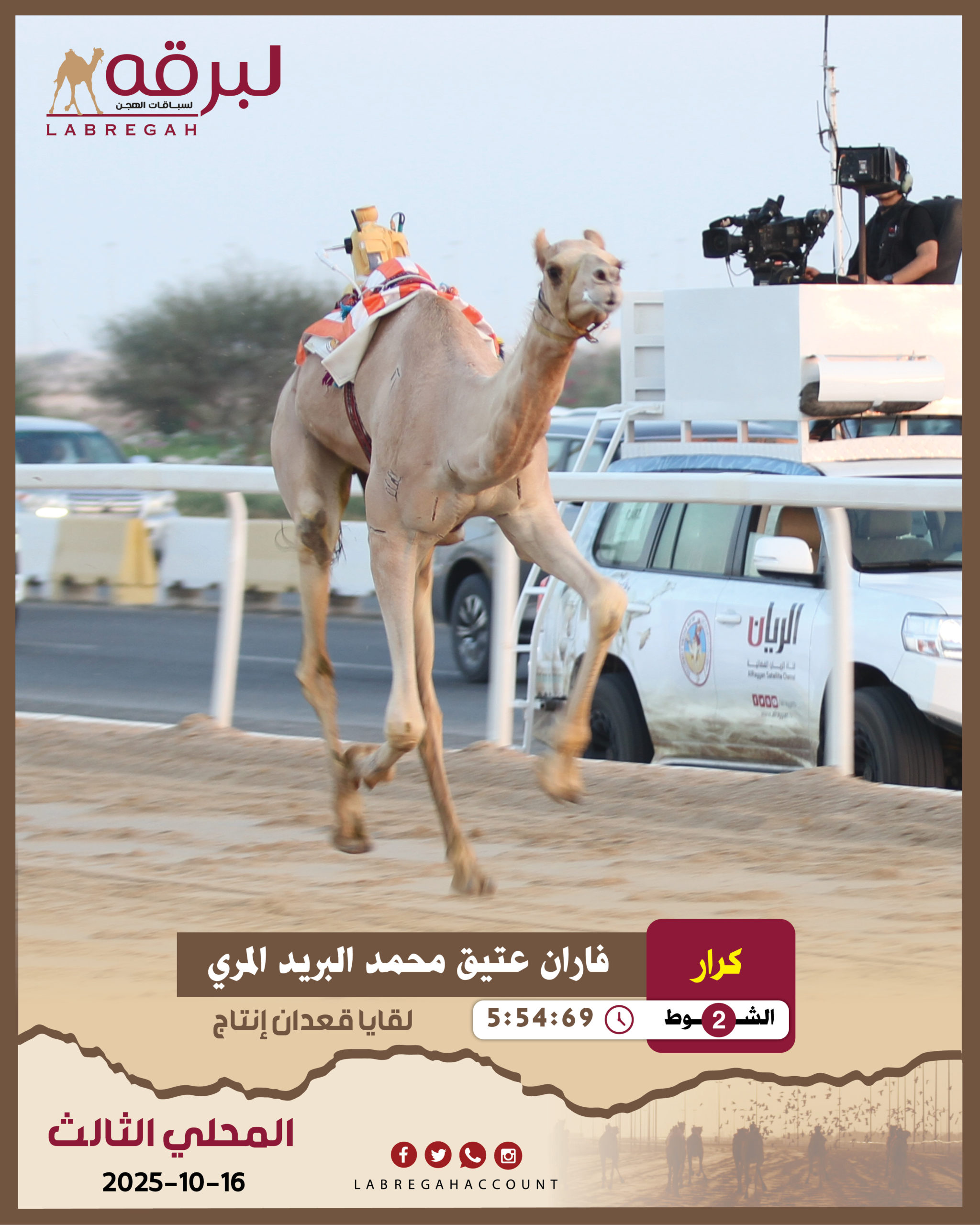 جولة جديدة من منافسات السباق المحلي الثالث، حيث أقيمت صباح اليوم الخميس 16 أكتوبر 2025، تحديات سن اللقايا الإنتاج وإنتاج قطر، والتي اشتملت على 17 شوطًا من مسافة الـ 4 كم، بمشاركة واسعة من هجن أبناء القبائل من أبناء قطر، وأبناء دول مجلس التعاون الخليجي.