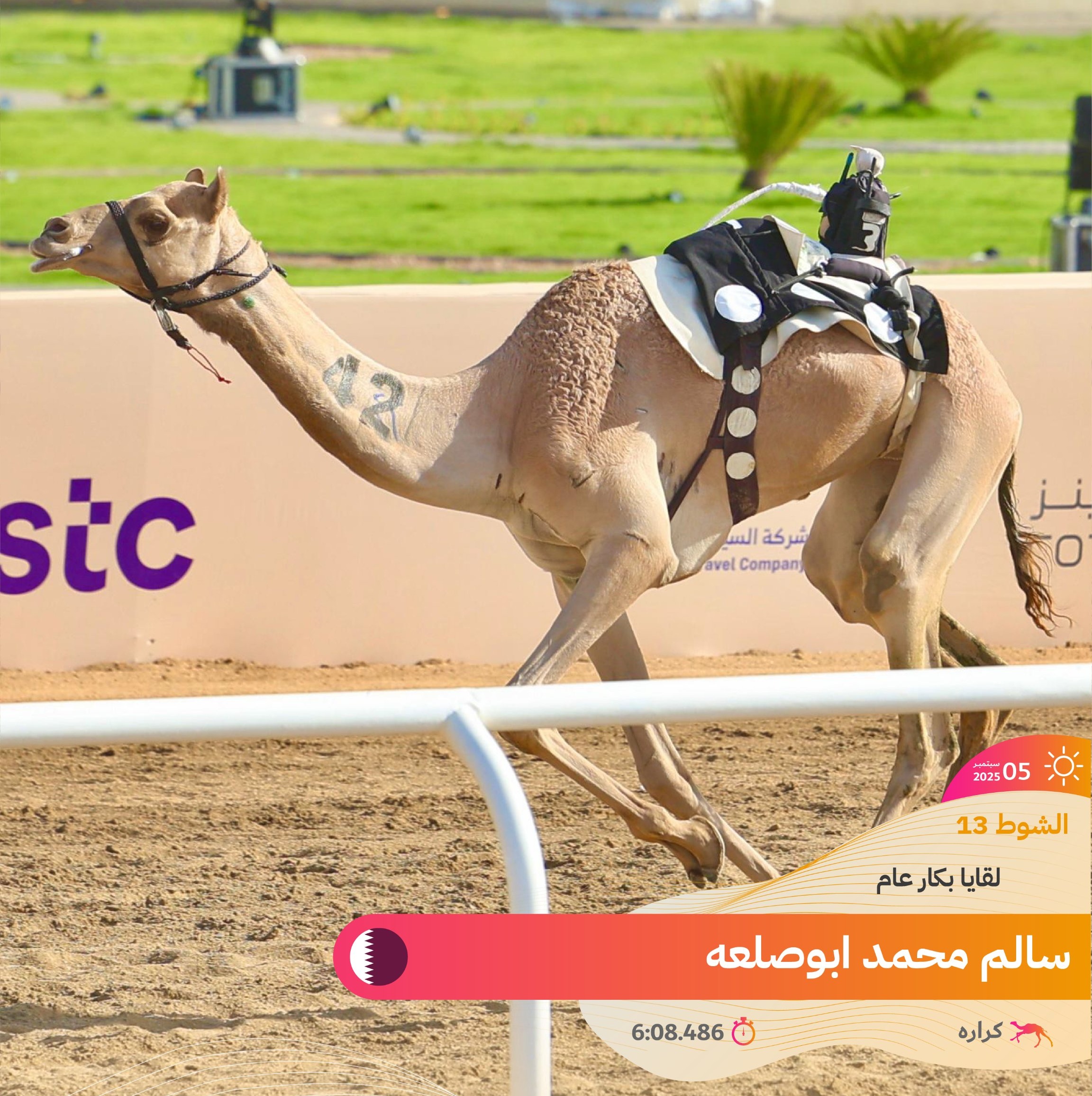 بينما سطع شعار المالك القطري سالم محمد سعيد حمد ابوصلعه على صدارة الشوط الثالث عشر على ظهر “كرارة” التي أبلت بلاًء حسنًا وأهدته الناموس بتوقيت بلغ 6.08.48 دقيقة .