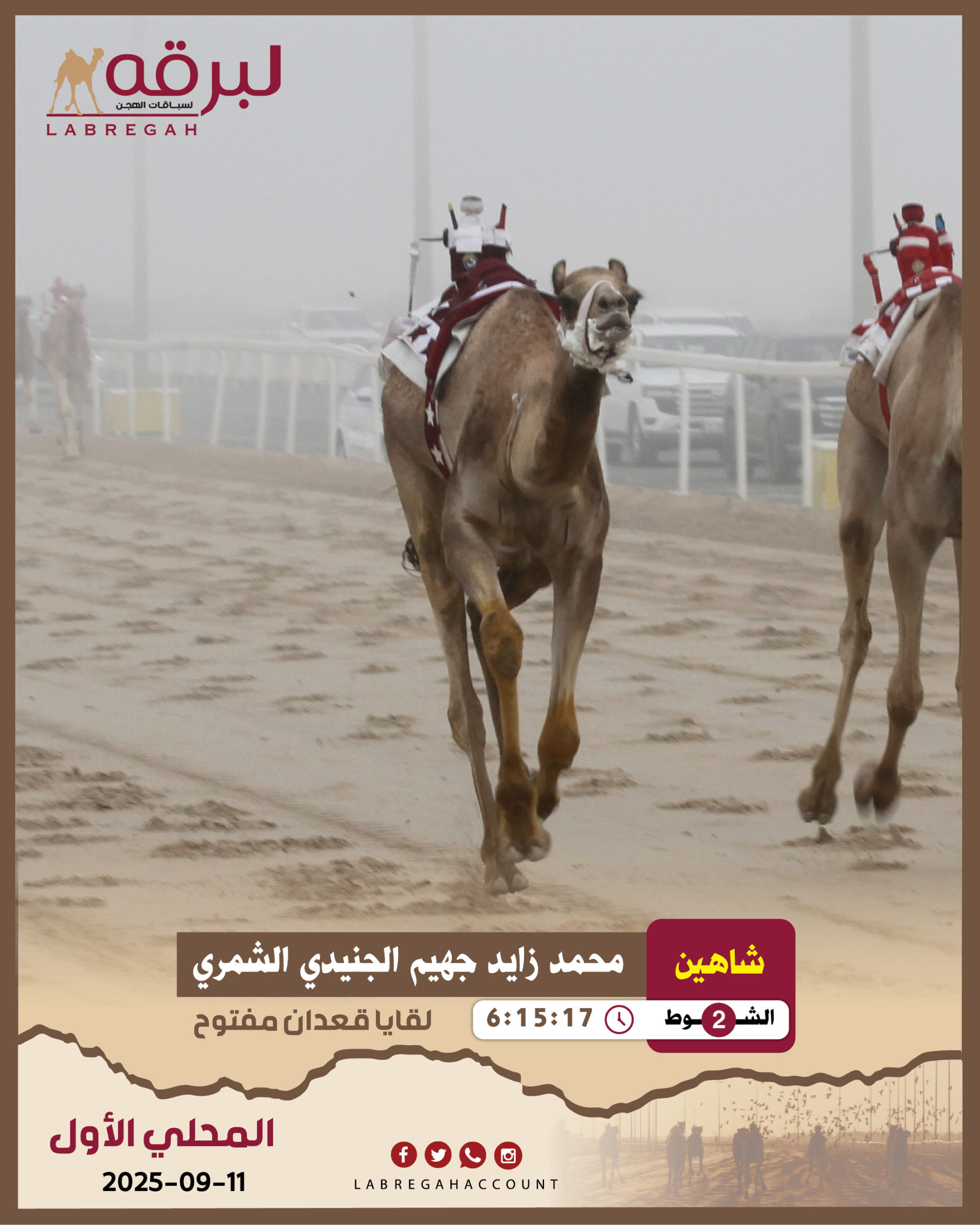 | الشوط الثاني | 1 | شاهين | محمد زايد جهيم الجنيدي الشمري | 6:15:17 |