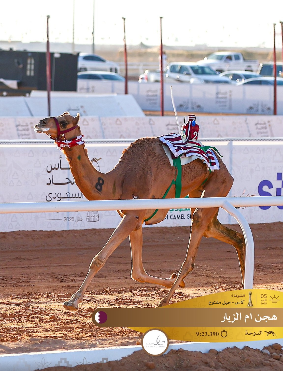 واصلت هجن أم الزبار توهجها وتألقها في بطولة كأس الإتحاد السعودي للهجن، المقام فعالياتها على أرضية ميدان حائل، بالمملكة العربية السعودية، مساء اليوم الأحد 5 أكتوبر 2025.