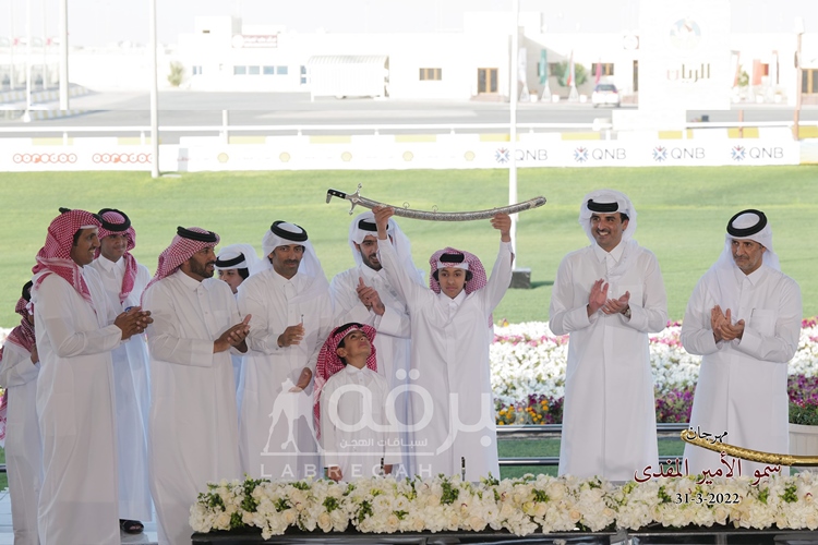 وبعد انتهاء المنافسات تشرف حضرة صاحب السمو، الشيخ تميم بن حمد آل ثاني، أمير البلاد المفدى، وقام بتتويج الرعاة والداعمين للمهرجان السنوي الكبير والفائزين بالرموز الذهبية لهجن أصحاب السمو والسعادة الشيوخ.