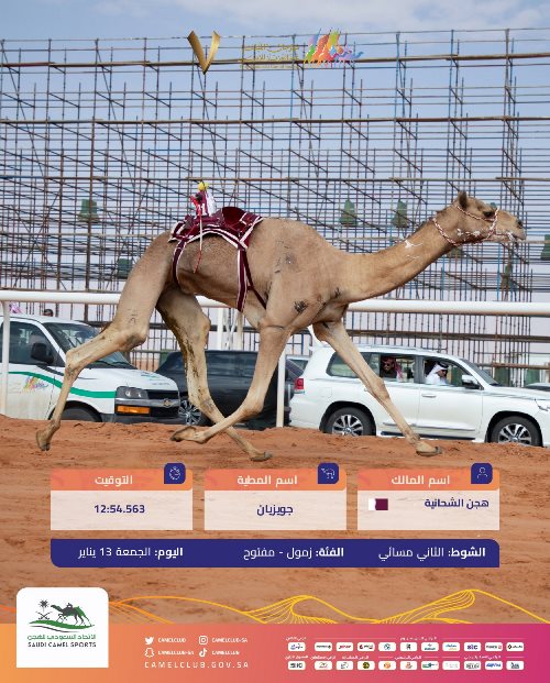تألقت الهجن القطرية بقوة في منافسات اليوم الختامي لمهرجان جائزة الملك عبدالعزيز للهجن، التي جرت بالمملكة العربية السعودية مساء اليوم الجمعة 13 يناير 2023، حيث ضربت الهجن القطرية موعداً جديدا مع التألق والإبداع، سواء على مستوى هجن أصحاب السمو والسعادة الشيوخ أوهجن أبناء القبائل، حيث حققت هجن الشعار العنابي المملوكة لمؤسسة هجن الشحانية، الفوز بسيف المهرجان المخصص لشوط الحيل مفتوح، وكذلك بندقية الزمول المخصصة لأقوى أشواط الزمول.