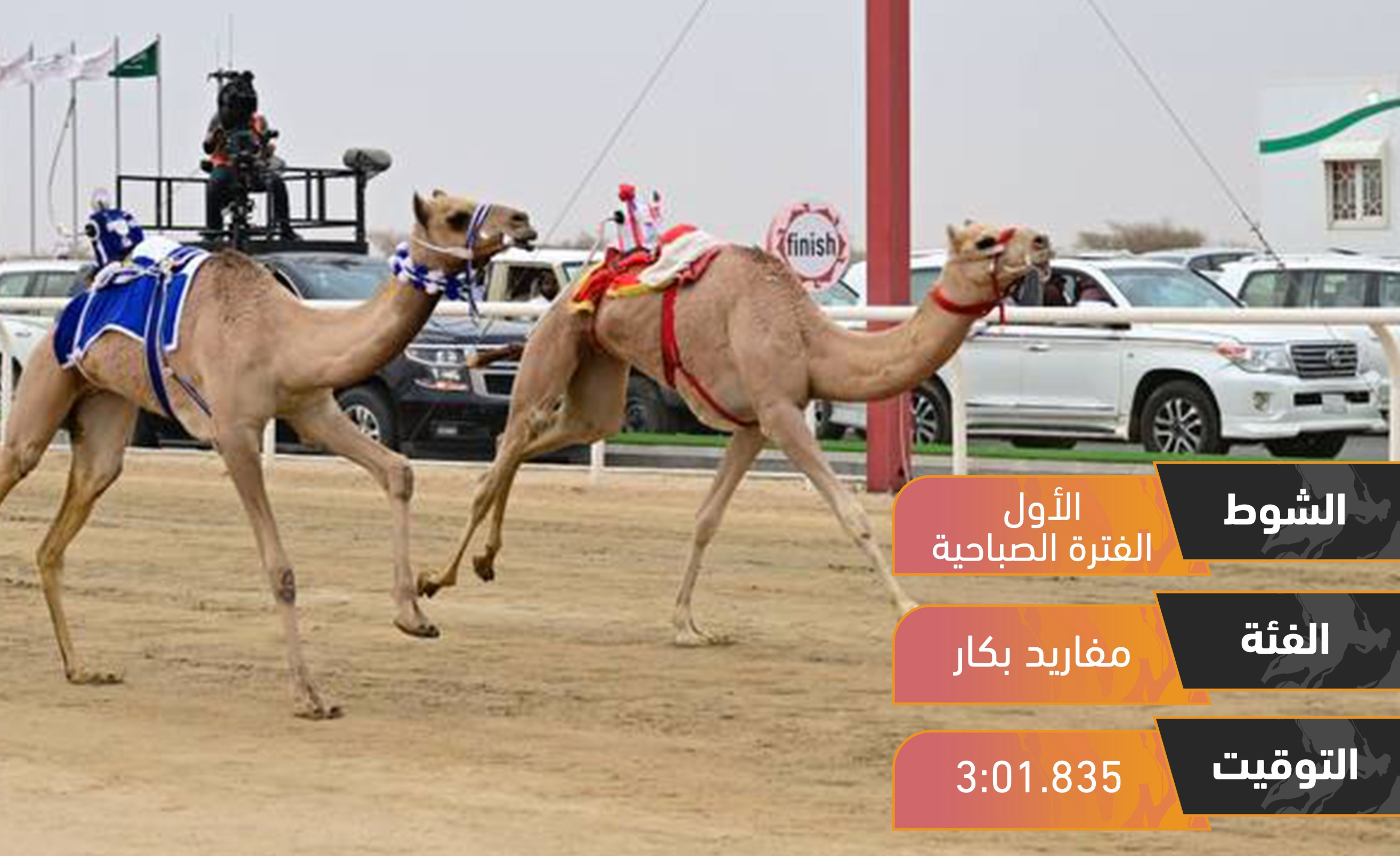 استطاع شعار علي مطارد الصمصام اليامي أن يحقق لقب أول الأشواط والمخصص للمفاريد بكار، وذلك على ظهر المفروده “حميه” التي دافعت عن اللقب بكل قوة حتى الرمق الأخير مسجلة توقيتاً زمنياً قدره 3.01.83 دقيقة، تاركة الوصافة لـ “ولايه” ملك سليمان سلامه سليمان الفايدي الجهني التي سجلت 3.01.88 دقيقة، وكانت “شواهين” لـ لاهوم فيصل محمد شريم هي من جاءت على المركز الثالث بتوقيت 3.02.54 دقيقة.