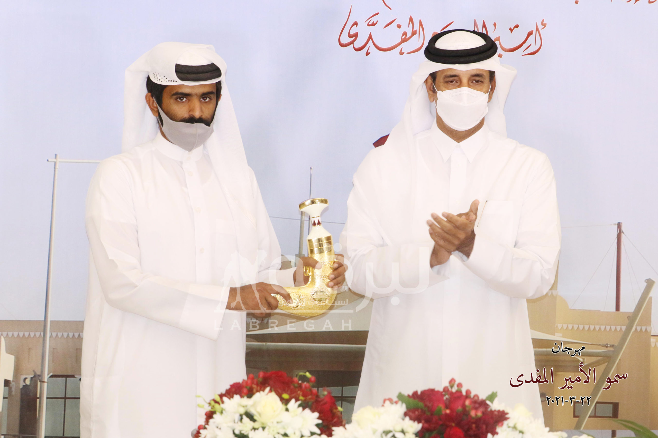 وأخيرا أهدى المضمر الشبل جابر بن سالم بن فاران فوز “زاهي” اليوم إلى مقام حضرة صاحب السمو الشيخ تميم بن حمد آل ثاني أمير البلاد المفدى، وإلى صاحب السمو الأمير الوالد الشيخ حمد بن خليفة آل ثاني، وإلى عشاق هجن الشحانية.