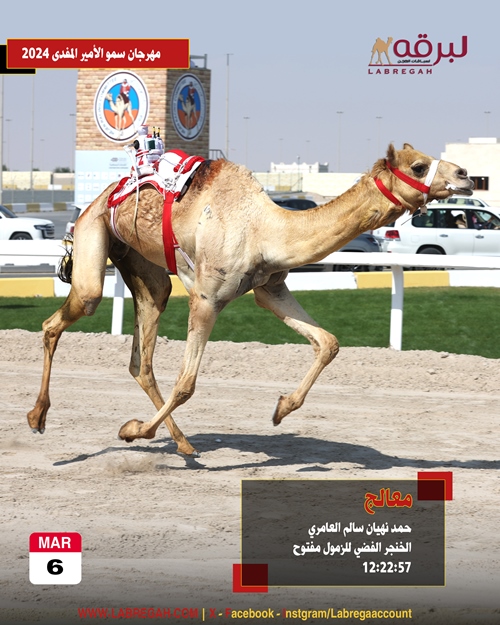 كما اقتنص «مكرم» ملك الدحبة قنازل مسلم حمرور العامري، خنجر الزمول عمانيات بتوقيت قدره 12.21.32 دقيقة، فيما انتزع «السريع» ملك محمد عتيق زيتون المهيري، الخنجر الفضي للزمول إنتاج في أول انطلاقات اليوم الختامي بتوقيت قدره 12.21.66 دقيقة.