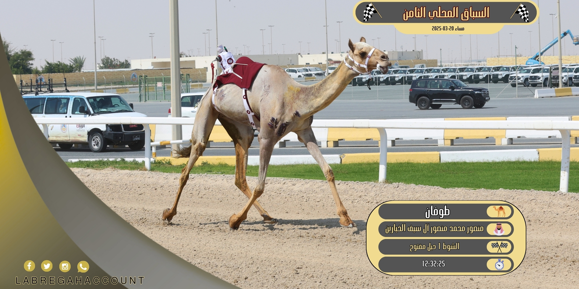 | الشوط الأول | 1 | طوفان | منصور محمد منصور آل سيف الخيارين | 12:32:25 |