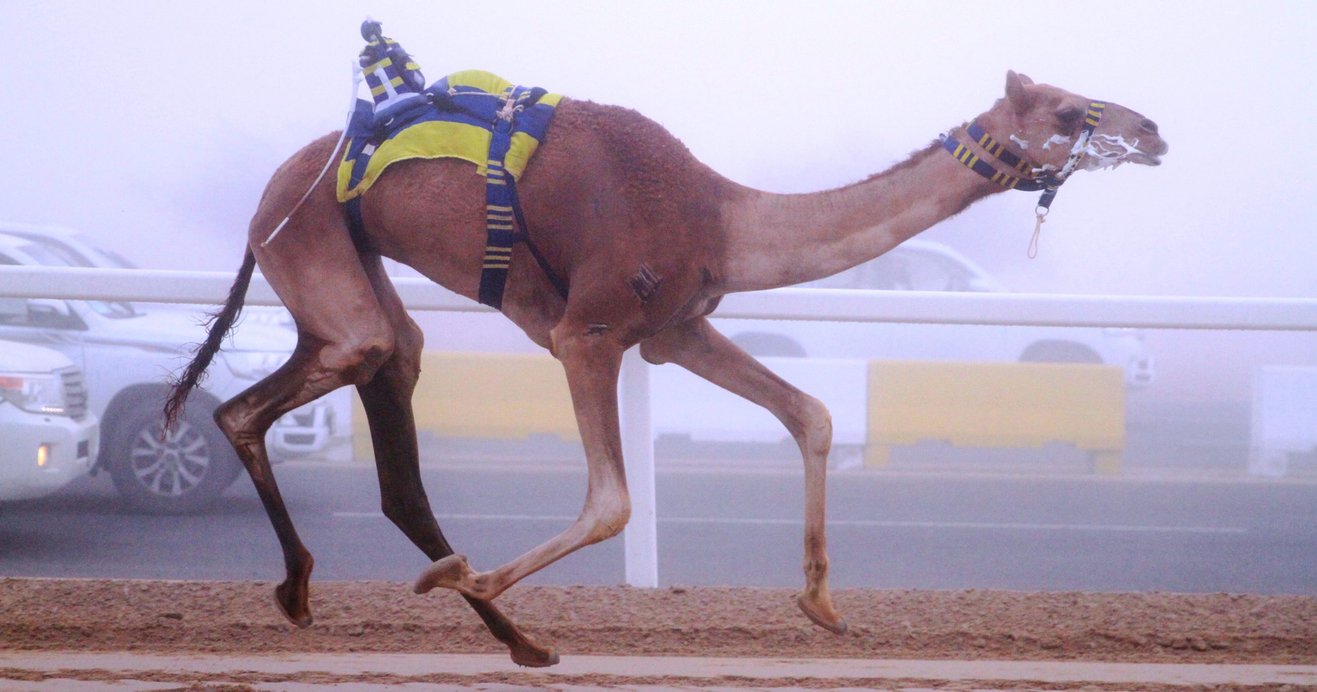 أما أفضل توقيت في منافسات اليوم فحققه “شاهين” ملك سعد محمد سالم بن جهويل، الفائز بناموس الشوط السابع عشر للجذاع قعدان إنتاج، وقطع “شاهين” مسافة الـ 4 كيلو مترات في توقيت زمني قدره 6.01.60 دقيقة.