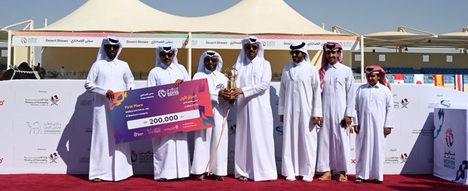 أهدى محمد بن عبدالله جارالله النابت المري المتوج بكأس العالم لشوط الجل (فئة المجاهيم) اليوم إلى حضرة صاحب السمو الشيخ تميم بن حمد آل ثاني أمير البلاد المفدى، وإلى صاحب السمو الأمير الوالد الشيخ حمد بن خليفة آل ثاني، وإلى جمهور “الكحلا” في كل مكان.