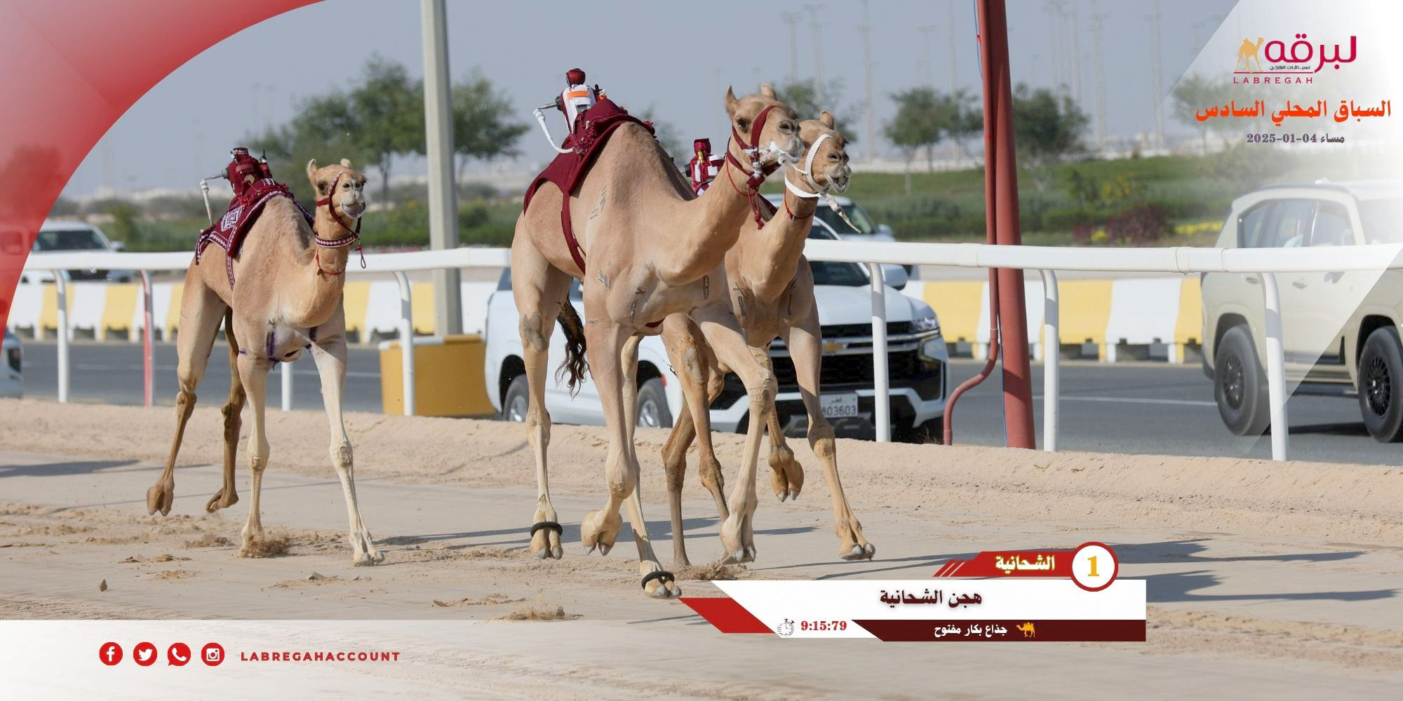 | بكار مفتوح | 2 | هبايب | هجن الشحانية | جابر بن سالم بن فاران | 9:23:95 |