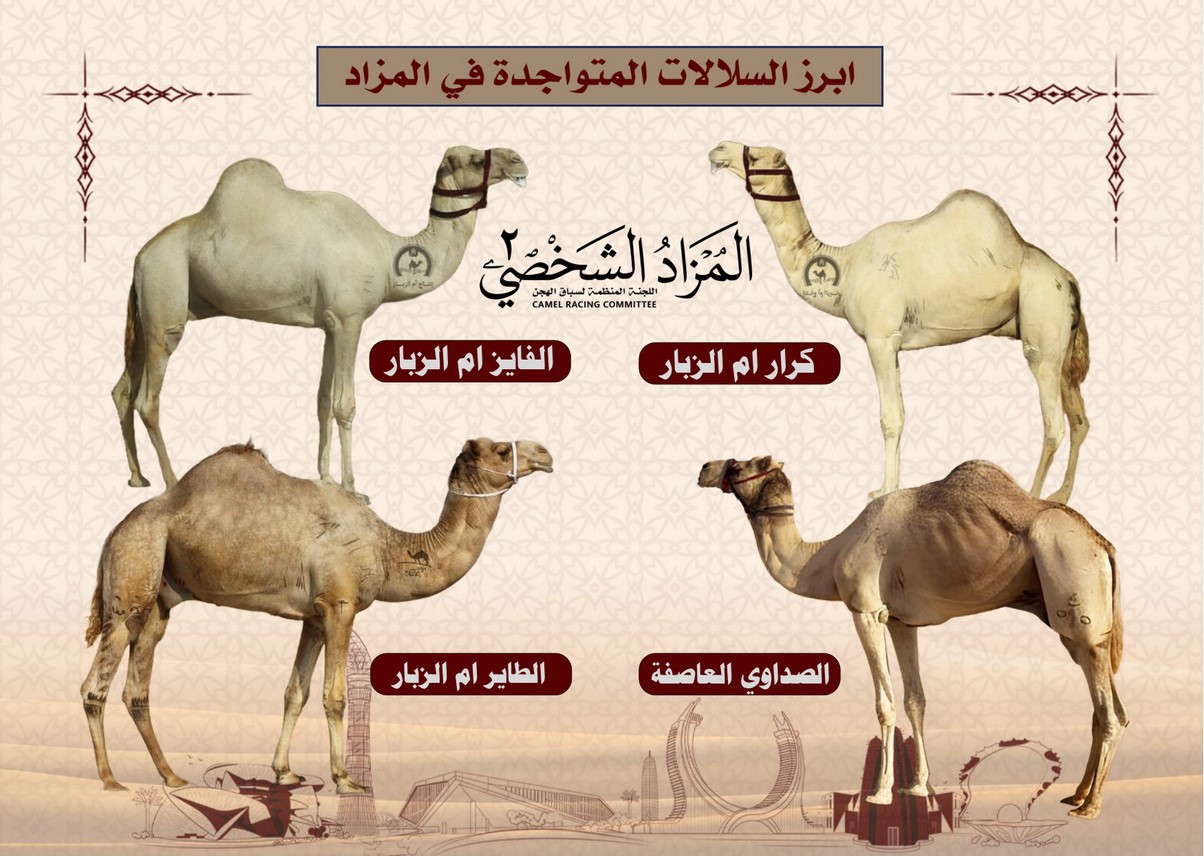 ويضم المزاد مجموعة مختارة من البكار والقعدان بلغت (13 بكرة و7 قعدان)، تم انتقاؤها بعناية من أفضل السلالات المثبتة في مختبر  قطر الأول للوراثة، إلى جانب نخبة من السلالات الأخرى مثل (كرار أم الزبار، الفايز أم الزبار، الصداروي العاصفة، والطاير أم الزبار)، بما يوفر منصة موثوقة للملاك والمهتمين للاطلاع والمشاركة وفق أطر تنظيمية واضحة ومعتمدة.  ويُقام المزاد على المنصة الرئيسية غد الجمعة 6 فبراير  بعد صلاة المغرب مباشرة، في تنظيم يعكس مكانة الحدث وأهميته.