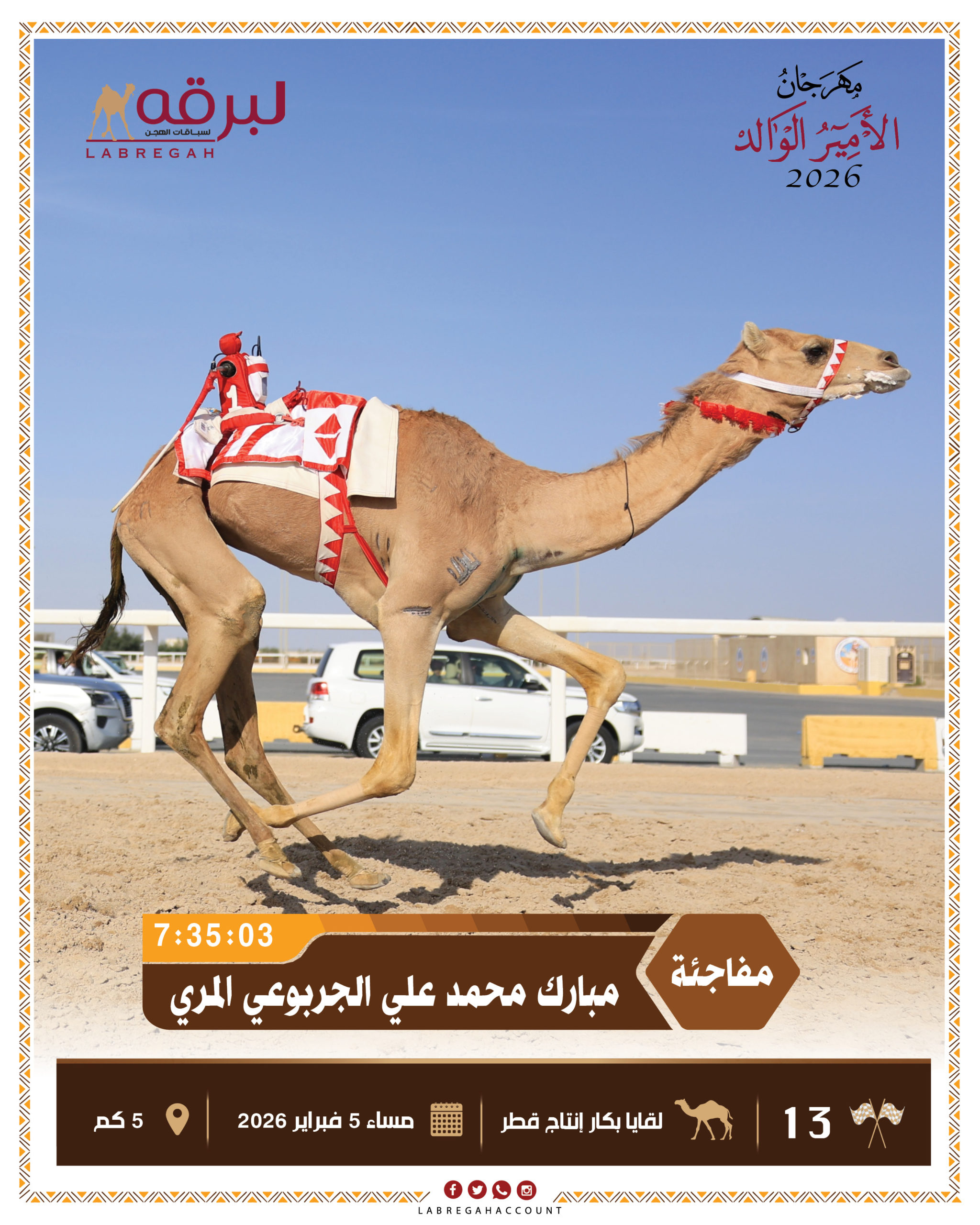 | الثالث عشر | 1 | مفاجئة | مبارك محمد علي الجربوعي المري | 7:35:03 |