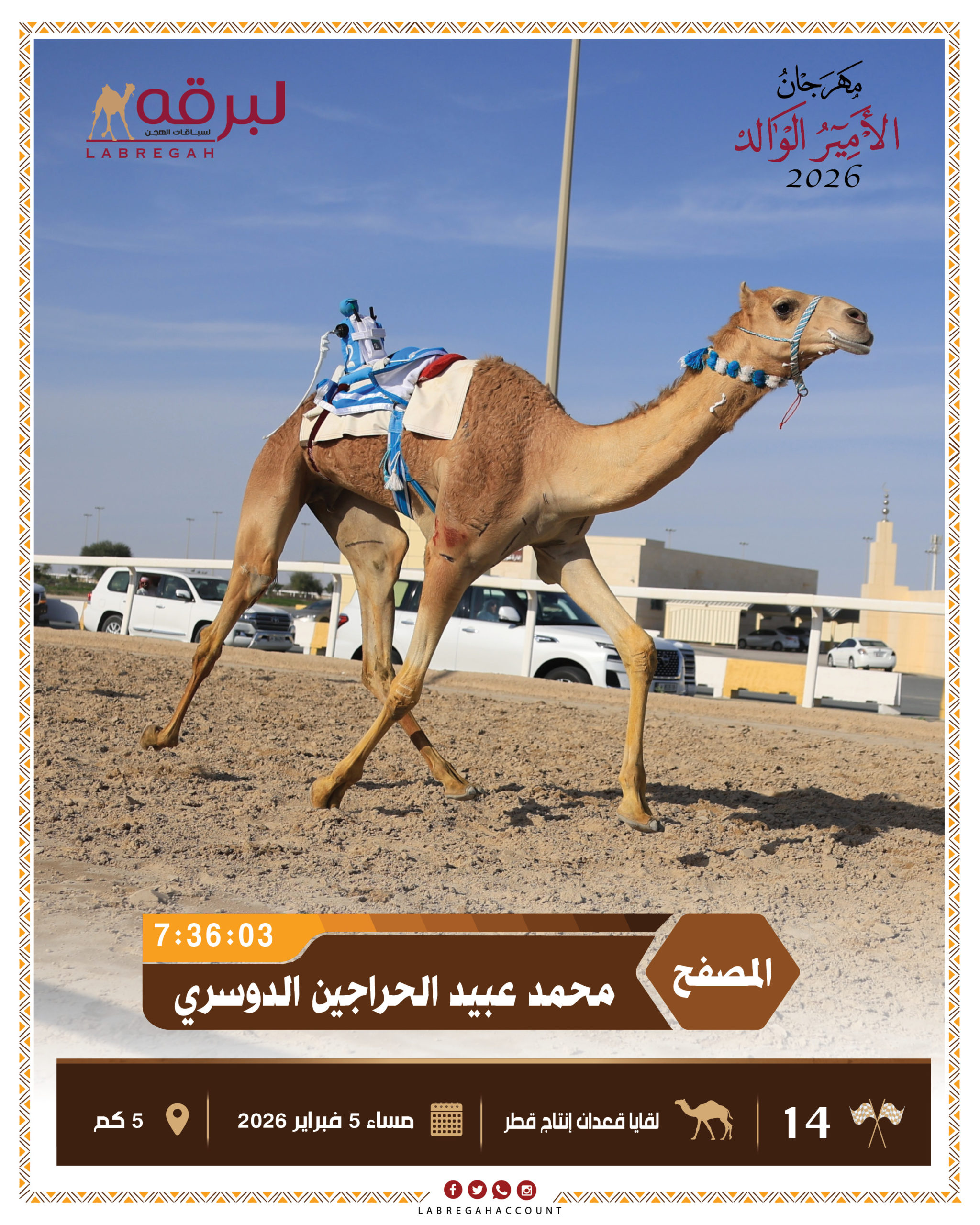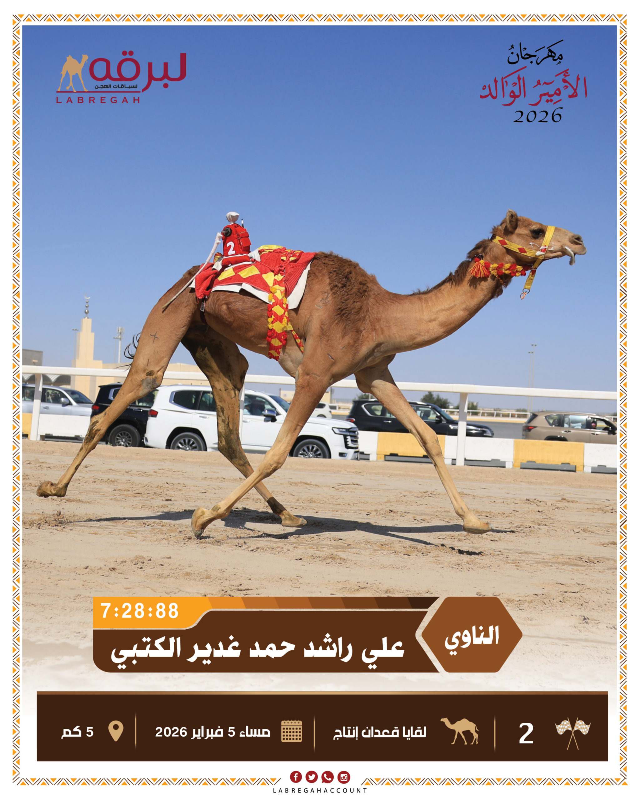 | رئيسي اللقايا | 2 | معزة | عبدالمحسن طالب علي الجربوعي المري | 7:27:85 |